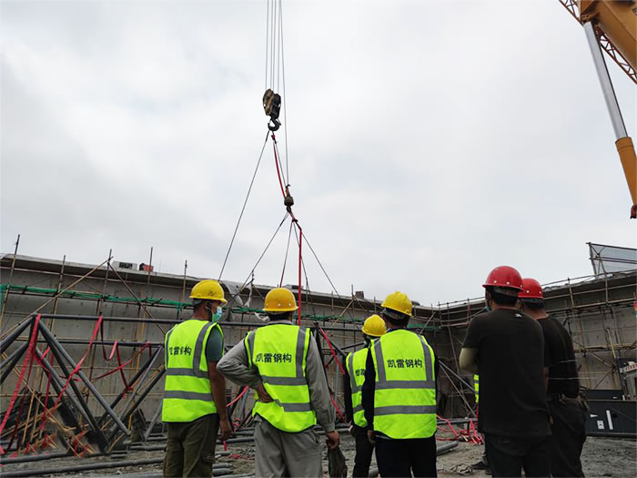 6.为确保.张掖加油站球形网架安装顺利,应有详细的张掖施工组织设计。网架安装必须保证结构的稳定性和不产生的附加变形。